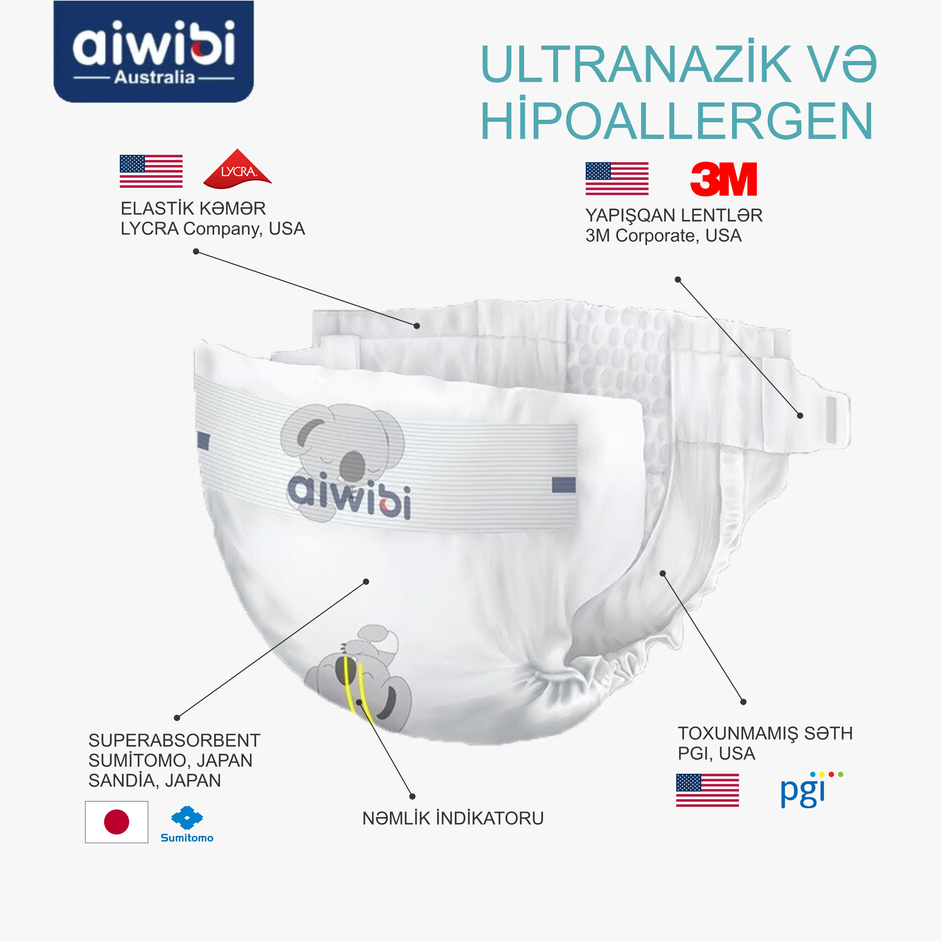 Uşaq bezləri AIWIBI Premium. XXL (15-21kq). 132 ədəd. Детские подгузники AIWIBI Premium. XXL (15-21кг). 132 штук.